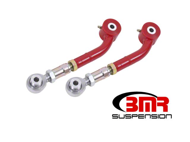 Launching harder, reducing wheel hop, and adding cornering consistency to your 2008-2019 Dodge Challenger is easy with upper trailing arms from BMR Suspension. Stock stamped steel trailing arms with soft rubber bushings deflect under load and absorb power instead of transferring it to the tires. BMRs rod ended, on-car adjustable trailing arms for Challengers(UTA112) are manufactured from heavy-duty 1-inch DOM steel tubing with TIG-welded Chrome-moly tube adapters. This design gives you a strong trailing arm that eliminates deflection and greatly improves performance. The UTA112 features zinc-plated two-piece, X-series, heat-treated, chrome-moly, self-lubricating, Teflon-lined rod ends. It also features 304 stainless steel, custom designed rod end spacers. This design provides reduced deflection, increased articulation, and an all-around improvement in performance. BMR Suspension designed the UTA112 to work well in street performance, drag race, and road race applications. The stock trailing arms flex under cornering loads giving you inconsistent handling characteristics. Combine this with soft bushings that have massive amounts of deflection and youre left with poor performance. The UTA112s heavy-duty construction eliminates trailing arm flex, giving you much improved repeatability on the street, starting line, or in the corners. BMRs rod ends allows for fine-tuning and bind-free suspension articulation needed for superior handling at any power level. When performance is a must, rely on BMR Suspension! BMR Suspensions UTA112 on-car adjustable upper trailing arms are available in red and black hammertone powdercoat for long-lasting good looks. Installation time is about 2 hours. Proudly made in the U.S.A.