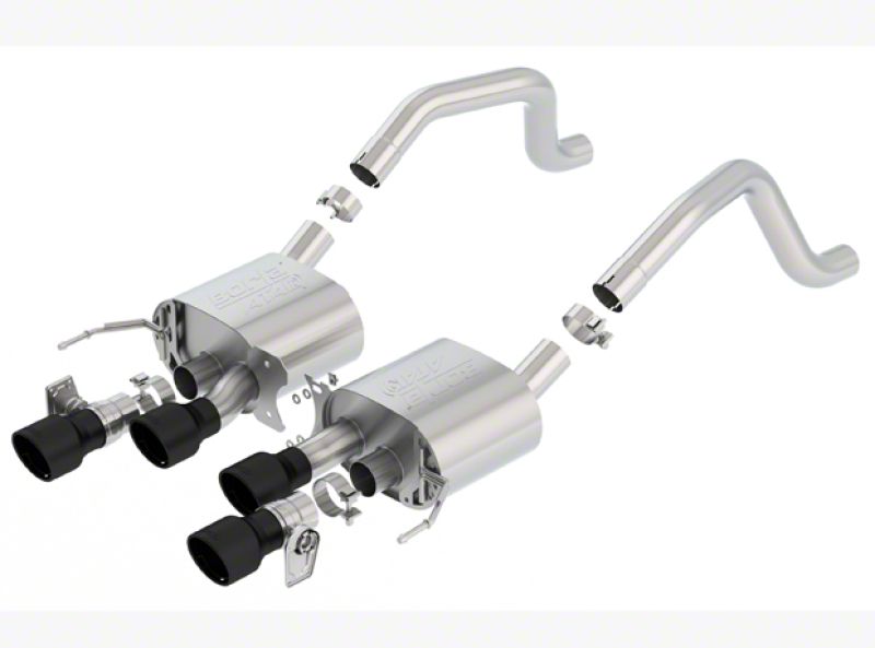 This Axle-Back system does NOT have AFM valves but is equipped with NPP valves. This system features the aggressive ATAK(r) sound and exits through durable high-temperature ceramic black finish on 4.25" intercooled T-304 stainless steel tips. Systems with polished T-304 stainless steel tips and carbon fiber tips are also available. BORLA(r) Cat-Back(TM) & Axle-Back exhaust systems feature patented straight-through and multi-core technology to unleash hidden horsepower. Increased exhaust velocity adds power, driving excitement, fuel economy, and the distinctive BORLA(r) Sound of Power respected by motoring enthusiasts everywhere. Each system is built from premium T-304 austenitic stainless steel, superior to T-400 series knockoffs (such as 409), to give you the absolute best in performance and durability. Ultra-smooth mandrel bends ensure maximum flow & power, and precision computer numerical control (CNC) manufacturing ensures an accurate fit. BORLA(r)'S C7 Corvette Axle-Back exhaust systems are covered under our Million-Mile Warranty for non-moving parts, the exhaust valves are warrantied for 1 year. Failures of original equipment AFM and NPP actuators are not covered by the BORLA(r) warranty
