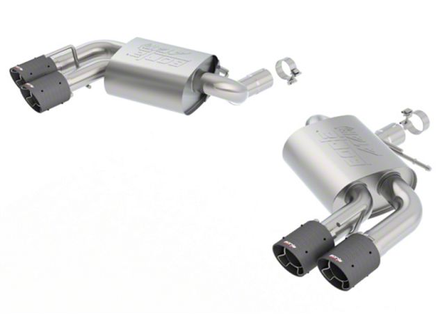 This system has dual tips and will fit vehicles equipped with Dual Mode Exhaust (NPP) valves but it does NOT include Dual Mode valves. It may be used with the dual tip lower bumper cover to convert a single, split rear exit to a dual split rear exit. It features unique BORLA 4" carbon fiber tips with bright centers. The ATAK is our most aggressive sounding system. BORLA Cat-Back & Axle-Back exhaust systems feature patented straight-through and multi-core technology to unleash hidden horsepower. Increased exhaust velocity adds power, driving excitement, fuel economy, and the distinctive BORLA Sound of Power respected by motoring enthusiasts everywhere. Each system is built from premium, high-quality T-304 austenitic stainless steel, superior to T-400 series knockoffs (such as 409), to give you the absolute best in performance and durability. Ultra-smooth mandrel bends ensure maximum flow & power, and precision computer numerical control (CNC) manufacturing ensures an accurate fit. Best of all, BORLA stands behind every system with a Million-Mile Warranty. Just what you'd expect from the world's most experienced (and most winning) exhaust brand.