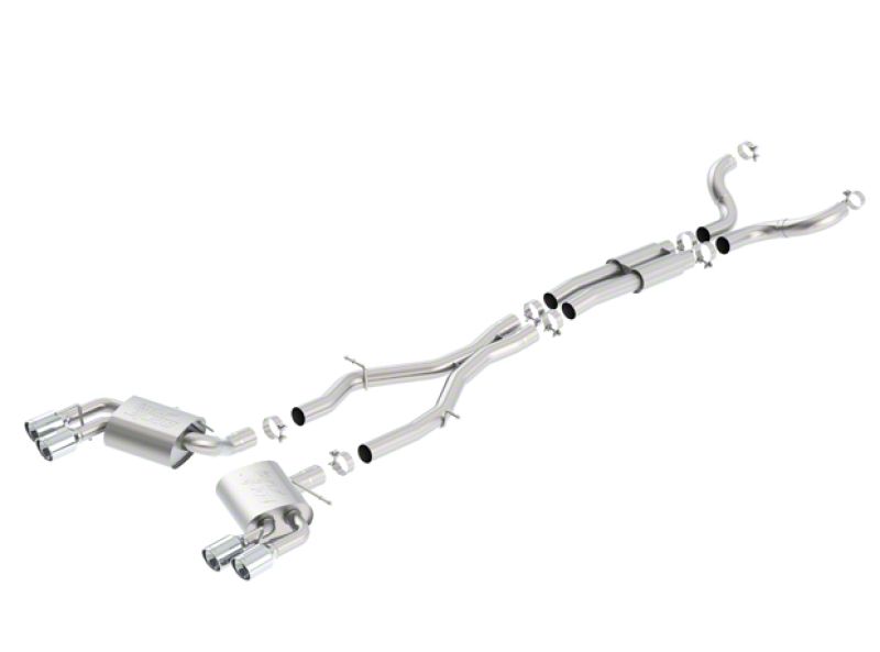 EXCEPT Convertible. System contains a merge X-Pipe for increased performance and while enhancing the aggressive ATAK sound. It has dual 4" polished T-304 stainless steel tips and will fit vehicles equipped with Dual Mode Exhaust (NPP), but it does NOT include Dual Mode or AFM valves. On vehicles equipped with AFM a check engine light will be activated. It may be used with the dual tip lower bumper cover to convert a single, split rear exit to a dual split rear exit. 3" diameter system is intended for vehicles with significant upgrades that require a larger diameter exhaust. It is recommended for use with Long Tube Headers. BORLA Cat-Back & Axle-Back exhaust systems feature patented straight-through and multi-core technology to unleash hidden horsepower. Increased exhaust velocity adds power, driving excitement, fuel economy, and the distinctive BORLA Sound of Power respected by motoring enthusiasts everywhere. Each system is built from premium T-304 austenitic stainless steel, superior to T-400 series knockoffs (such as 409), to give you the absolute best in performance and durability. Ultra-smooth mandrel bends ensure maximum flow & power, and precision computer numerical control (CNC) manufacturing ensures an accurate fit. Best of all, BORLA stands behind every system with a Million-Mile Warranty. Just what you'd expect from the world's most experienced (and most winning) exhaust brand.