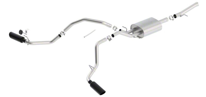 This system features the aggressive ATAK sound and exits through 4" black chrome on T-304 stainless steel tips. Using BORLA Stainless Steel Polish p# 21461 is NOT recommended with these black chrome tips. We suggest cleaning the tips with hot water and a microfiber cloth. A system with bright chrome on T-304 stainless steel tips is also available. BORLA Cat-Back and Axle-Back exhaust systems feature patented straight-through and multi-core technology designed to unleash hidden horsepower. Increased exhaust velocity adds power, driving excitement, fuel economy, and the distinctive BORLA Sound of Power respected by motoring enthusiasts everywhere. Each system is built from premium T-304 stainless steel, superior to T-400 series knockoffs (such as 409), to give you the absolute best in performance and durability. Ultra-smooth mandrel bends ensure maximum flow & power, and precision computer numerical control (CNC) manufacturing ensures an accurate fit. Best of all, BORLA stands behind every system with a Million-Mile Warranty. Just what you'd expect from the world's most experienced (and most winning) exhaust brand.