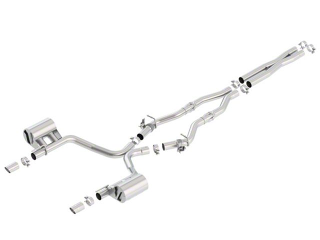 This system INCLUDES functioning MDS (multiple-displacement system) valves. Tips are NOT included. Reuse factory valance / tips or optional BORLA(r) tips. On 2019-2022 Charger R/T Vehicles ADD Connecting Pipes 60726 to reuse O.E. Tips that have a female ball flare inlet or optional BORLA(r) tips 60729, 60729BC, 60729BC. System contains a merge X-Pipe for improved performance. System also features BORLA(r)'S Polyphonic Harmonizer Technology which utilizes patented units that contain pipes of different diameters and lengths to create multiple exhaust notes that harmonize to deliver a clean, rich, full-bodied sound to the BORLA(r) mufflers. The mufflers then enhance this sound to the character and volume appropriate for our Touring, S-Type and ATAK(r) systems. BORLA(r) Cat-Back(tm) & Axle-Back exhaust systems feature patented straight-through and multi-core technology to unleash hidden horsepower. Increased exhaust velocity adds power, driving excitement, fuel economy, and the distinctive BORLA(r) Sound of Power respected by motoring enthusiasts everywhere. Each system is built from premium T-304 austenitic stainless steel, superior to T-400 series knockoffs (such as 409), to give you the absolute best in performance and durability. Ultra-smooth mandrel bends ensure maximum flow & power, and precision computer numerical control (CNC) manufacturing ensures an accurate fit. Best of all, BORLA(r) stands behind every system with a Million-Mile Warranty. Just what you'd expect from the world's most experienced (and most winning) exhaust brand.