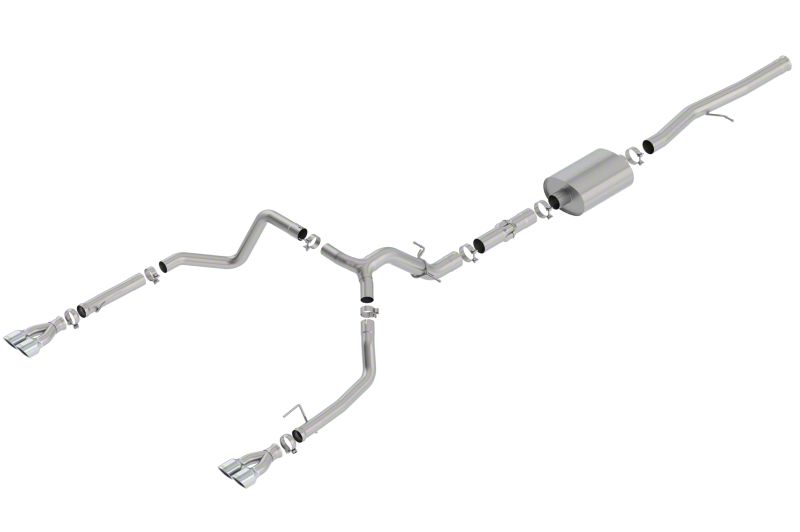 EXCEPT ZR2 & AT4X models. Factory Split Rear Exit ONLY. This system features bright chrome on T-304 stainless steel tips. Add Adapter 60706 for Crew Cab with Standard Bed (6' 7") 157" Wheelbase vehicles. System features BORLA's aggressive ATAK muffler and Polyphonic Harmonizer Technology which utilizes patented units that contain pipes of different diameters and lengths to create multiple exhaust notes that harmonize to deliver a clean, rich, full-bodied sound. Replace the Polyphonic Harmonizer behind the muffler in the ATAK system with muffler 60679 to attain the "S-Type" sound level (quieter than ATAK). BORLA Cat-Back & Axle-Back exhaust systems feature patented straight-through and multi-core technology designed to unleash hidden horsepower. Increased exhaust velocity adds power, driving excitement, fuel economy, and the distinctive BORLA Sound of Power respected by motoring enthusiasts everywhere. Each system is built from premium T-304 stainless steel, superior to T-400 series knockoffs (such as 409), to give you the absolute best in performance and durability. Ultra-smooth mandrel bends ensure maximum flow & power, and precision computer numerical control (CNC) manufacturing ensures an accurate fit. Best of all, BORLA stands behind every system with a Million-Mile Warranty. Just what you'd expect from the world's most experienced (and most winning) exhaust brand.