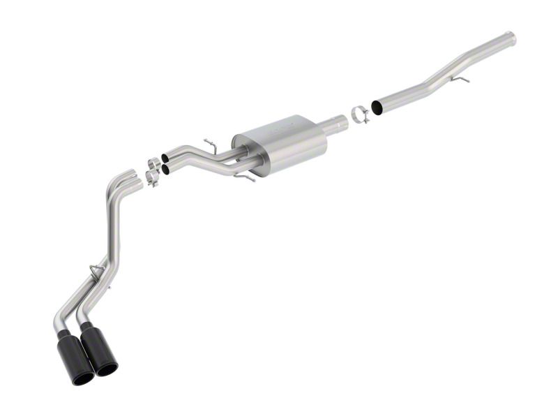 This system features a black chrome finish on T-304 stainless steel tips. Using Borla Stainless Steel Polish p# 21461 is NOT recommended with these black chrome tips. We suggest cleaning the tips with hot water and a microfiber cloth. Borla Cat-Back and Axle-Back exhaust systems feature patented straight-through and multi-core technology designed to unleash hidden horsepower. Increased exhaust velocity adds power, driving excitement, fuel economy, and the distinctive Borla Sound of Power respected by motoring enthusiasts everywhere. Each system is built from premium T-304 stainless steel, superior to T-400 series knockoffs (such as 409), to give you the absolute best in performance and durability. Ultra-smooth mandrel bends ensure maximum flow & power, and precision computer-controlled CNC manufacturing ensures an accurate fit. Best of all, Borla stands behind every system with a Million-Mile Warranty. Just what you'd expect from the world's most experienced (and most winning) exhaust brand.