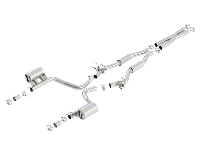 System features a X-Pipe for increased performance and improved sound. This system INCLUDES functioning MDS (multi-displacement system) valves. Tips NOT included. Use factory tips / valance. BORLA(r) Cat-Back(tm) & Axle-Back exhaust systems feature patented straight-through and multi-core technology to unleash hidden horsepower. Increased exhaust velocity adds power, driving excitement, fuel economy, and the distinctive BORLA(r) Sound of Power respected by motoring enthusiasts everywhere. Each system is built from premium T-304 austenitic stainless steel, superior to T-400 series knockoffs (such as 409), to give you the absolute best in performance and durability. Ultra-smooth mandrel bends ensure maximum flow & power, and precision computer numerical control (CNC) manufacturing ensures an accurate fit. Best of all, BORLA(r) stands behind every system with a Million-Mile Warranty. Just what you'd expect from the world's most experienced (and most winning) exhaust brand.