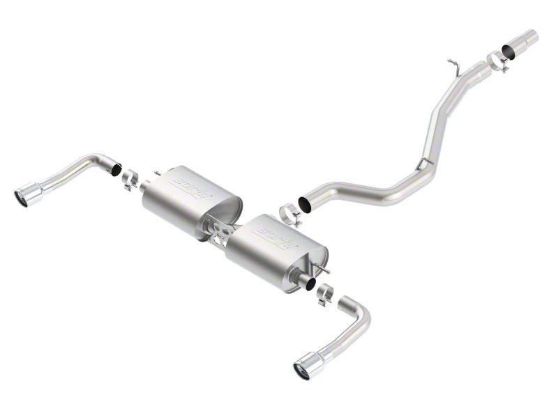 System features polished T-304 stainless steel tips. BORLA(r) Cat-Back(tm) & Axle-Back exhaust systems feature patented straight-through and multi-core technology designed to unleash hidden horsepower. Increased exhaust velocity adds power, driving excitement, fuel economy, and the distinctive BORLA(r) Sound of Power respected by motoring enthusiasts everywhere. Each system is built from premium T-304 stainless steel, superior to T-400 series knockoffs (such as 409), to give you the absolute best in performance and durability. Ultra-smooth mandrel bends ensure maximum flow & power, and precision computer-controlled CNC manufacturing ensures an accurate fit. Best of all, BORLA(r) stands behind every system with a Million-Mile Warranty. Just what you'd expect from the world's most experienced (and most winning) exhaust brand.