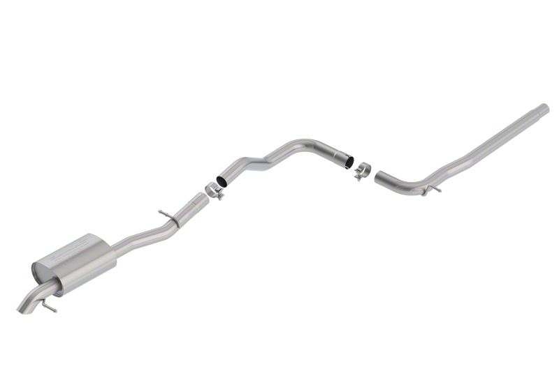 Features a brushed T-304 stainless steel tip. Borla Cat-Back & Axle-Back exhaust systems feature patented straight-through and multi-core technology designed to unleash hidden horsepower. Increased exhaust velocity adds power, driving excitement, fuel economy, and the distinctive Borla Sound of Power respected by motoring enthusiasts everywhere. Each system is built from premium T-304 stainless steel, superior to T-400 series knockoffs (such as 409), to give you the absolute best in performance and durability. Ultra-smooth mandrel bends ensure maximum flow & power, and precision computer-controlled CNC manufacturing ensures an accurate fit. Best of all, Borla stands behind every system with a Million-Mile Warranty. Just what you'd expect from the world's most experienced (and most winning) exhaust brand.