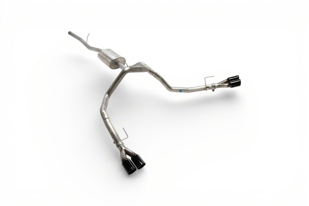 Factory Split Rear Exit vehicles ONLY. This system features 3.5" black chrome finish on T-304 stainless steel tips. Using BORLA Stainless Steel Polish p# 21461 is NOT recommended with these black chrome tips. We suggest cleaning the tips with hot water and a microfiber cloth. Carbon fiber tips with bright centers are also available. Add Adapter 60708 for Crew Cab with Standard Bed (6' 7") 157" Wheelbase vehicles. BORLA Cat-Back and Axle-Back exhaust systems feature patented straight-through and multi-core technology designed to unleash hidden horsepower. Increased exhaust velocity adds power, driving excitement, fuel economy, and the distinctive BORLA Sound of Power respected by motoring enthusiasts everywhere. Each system is built from premium T-304 stainless steel, superior to T-400 series knockoffs (such as 409), to give you the absolute best in performance and durability. Ultra-smooth mandrel bends ensure maximum flow& power, and precision computer numerical control (CNC) manufacturing ensures an accurate fit. Best of all, BORLA stands behind every system with a Million-Mile Warranty. Just what you'd expect from the world's most experienced (and most winning) exhaust brand.