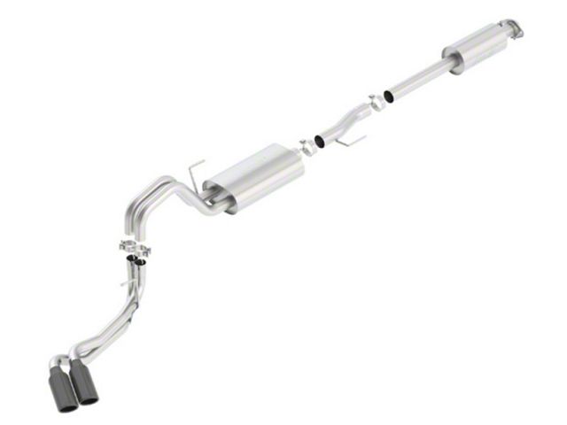 EXCEPT Raptor. Add Adapter 60556 for Crew Cab Standard Bed (6' 7") 156.8" wheelbase, or Adapter 60564 for Ext. Cab Long Bed (8' 2") 163.7" wheelbase. This system features a Black Chrome finish on 4" T-304 stainless steel tips. Using BORLA(r) Stainless Steel Polish p# 21461 is NOT recommended with these black chrome tips. We suggest cleaning the tips with hot water and a microfiber cloth. BORLA(r) Cat-Back(tm) and Axle-Back exhaust systems feature patented straight-through and multi-core technology designed to unleash hidden horsepower. Increased exhaust velocity adds power, driving excitement, fuel economy, and the distinctive BORLA(r) Sound of Power respected by motoring enthusiasts everywhere. Each system is built from premium, high-quality T-304 stainless steel, superior to T-400 series knockoffs (such as 409), to give you the absolute best in performance and durability. Ultra-smooth mandrel bends ensure maximum flow& power, and precision computer numerical control (CNC) manufacturing ensures an accurate fit. Best of all, BORLA(r) stands behind every system with a Million-Mile Warranty. Just what you'd expect from the world's most experienced (and most winning) exhaust brand.