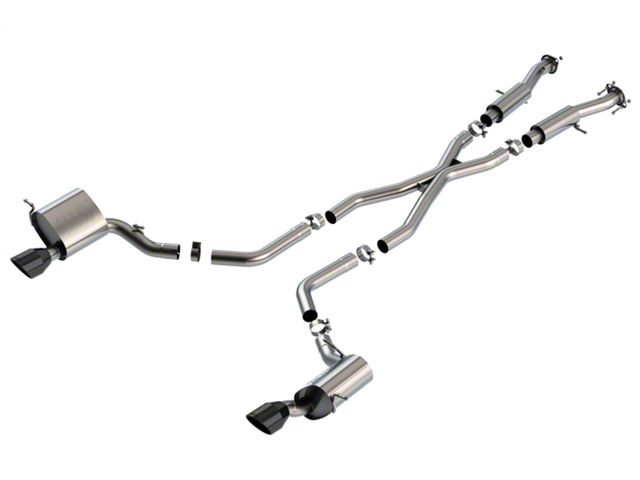 This system features the aggressive ATAK sound and exits through 5" ceramic black on T-304 stainless steel tips. A system with bright chrome on T-304 stainless steel tips is also available. BORLA Cat-Back & Axle-Back multi-core technology is designed to unleash hidden horsepower. Increased exhaust velocity adds power, driving excitement, fuel economy, and the distinctive BORLA Sound of Power respected by motoring enthusiasts everywhere. The system contains a merge X-pipe for increased performance and improved sound. Each system is built from premium T-304 stainless steel, superior to T-400 series knockoffs (such as 409), to give you the absolute best in performance and durability. Ultra-smooth mandrel bends ensure maximum flow & power, and precision computer numerical control (CNC) manufacturing ensures an accurate fit. Best of all, BORLA stands behind every system with a Million-Mile Warranty. Just what you'd expect from the world's most experienced (and most winning) exhaust brand.