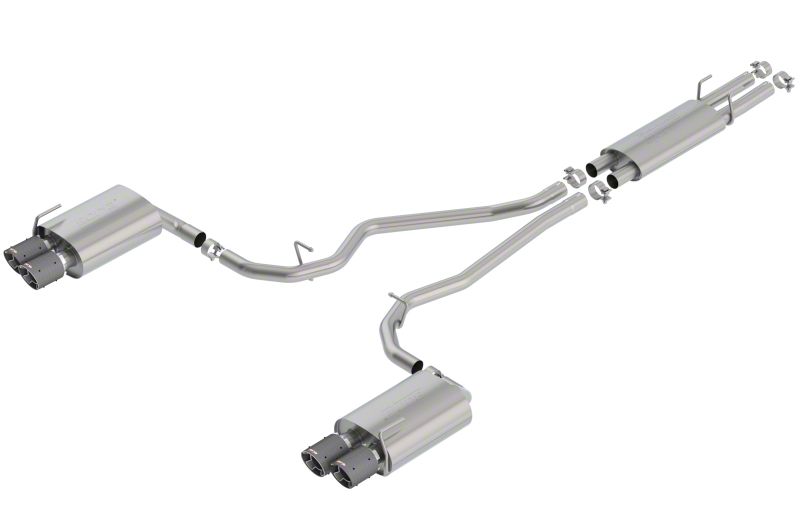 BORLA is proud to present their exhaust systems for the Ford Explorer ST, Explorer Platinum, and Lincoln Aviator. Our Cat-Back systems have been specifically developed for the 3.0L V6 EcoBoost engine with performance and sound in mind. The S-Type Cat-Back system delivers a balanced, sporty sound without adding any drone inside the vehicle to ensure an enjoyable driving experience. The front muffler contains an internal H-Pipe for increased performance and improved sound. This system features carbon fiber tips with bright centers, but is also available with bright chrome on T-304 stainless steel or black chrome ton T-304 stainless steel tips. Our exhaust is constructed using premium T-304 stainless steel and bolts on to the factory system for stress-free installation. Add power and a balanced, sporty sound to your vehicle, bolt on a BORLA Cat-Back Exhaust System S-Type Sound Level No Drone Quad 4" Carbon Fiber Tips With Bright Centers T-304 Stainless Steel Construction Million-Mile Warranty Best of all, BORLA stands behind every system with a Million-Mile Warranty. Just what you'd expect from the world's most experienced (and most winning) exhaust brand.