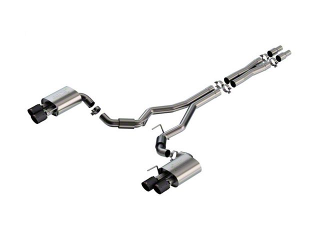 EXCEPT Convertible. This 3" diameter True Dual Quad Tip BORLA Cat-Back system features a merge X-Pipe for increased performance and improved sound. Muffler contains Polyphonic Harmonizer technolgy which utilizes patented units that contain pipes of different diameters and lengths to create multiple exhaust notes that harmonize to deliver a clean, rich, full-bodied sound. This system features the aggressive ATAK sound with no drone inside the vehicle and 4" carbon fiber tips, and is for vehicles without the Active Exhaust feature. Systems with bright chrome on T-304 stainless steel tips, and black chrome on T-304 stainless steel tips are also avaiable. If your car has 1 tip on each muffler and you want to upgrade it to 2 tips on each muffler (also know as quad tips), this is the system for you. It is designed to work with the quad tip (2 tips per muffler) O.E. Ford Valance ONLY. W/ Parking Sensors: PR3Z-17F828-DA. W/O Parking Sensors: PR3Z-17F828-CA. BORLA Cat-Back and Axle-Back exhaust systems feature patented straight-through and multi-core technology designed to unleash hidden horsepower. Increased exhaust velocity adds power, driving excitement, fuel economy, and the distinctive BORLA Sound of Power respected by motoring enthusiasts everywhere. Each system is built from premium T-304 stainless steel, superior to T-400 series knockoffs (such as 409), to give you the absolute best in performance and durability. Ultra-smooth mandrel bends ensure maximum flow & power, and precision computer numerical control (CNC) manufacturing ensures an accurate fit. Best of all, BORLA stands behind every system with a Million-Mile Warranty. Just what you'd expect from the world's most experienced (and most winning) exhaust brand.