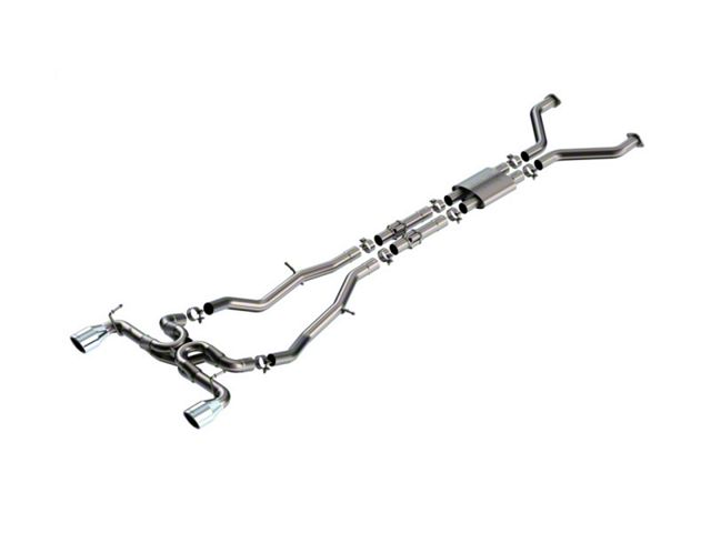 This system is a True Dual design that features a Resonator with an internal H-Pipe, Polyphonic harmonizer technolgy, and SwitchFire technology. All of these features combine to provide the ATAK sound level, our most aggressive sound. It provides a more exciting driving experience without any drone. The Merge X-Pipe blends the combustion pulses from both sides of the engine for improved performance and a custom sound. BORLA'S Polyphonic Harmonizer Technology utilizes patented units that contain pipes of different diameters and lengths to create multiple exhaust notes that harmonize to deliver a clean, rich, full-bodied sound. BORLA'S patented SwitchFire design further blends the combustion gases and sound waves. 4.5" polished phantom style T-304 stainless steel tips provide a custom appearance. Systems with carbon fiber tips with black anodized centers are also available. BORLA Cat-Back exhaust systems feature patented technology to unleash hidden horsepower. Increased exhaust velocity adds power, driving excitement, fuel economy, and the distinctive BORLA Sound of Power respected by motoring enthusiasts everywhere. Each system is built from premium, high-quality T-304 austenitic stainless steel, superior to T-400 series knockoffs (such as 409), to give you the absolute best in performance and durability. Ultra-smooth mandrel bends ensure maximum flow & power, and precision computer numerical control (CNC) manufacturing ensures an accurate fit. Best of all, BORLA stands behind every system with a Million-Mile Warranty. Just what you'd expect from the world's most experienced (and most winning) exhaust brand.