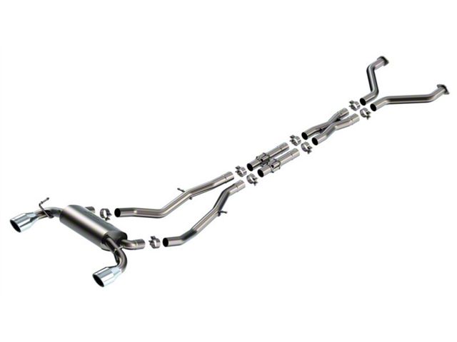 This system is a True Dual design that features a Merge X-Pipe and Polyphonic harmonizer technolgy. All of these features combine to provide the classic S-Type sound level and the BORLA no drone guarantee. The Merge X-Pipe blends the combustion pulses from both sides of the engine for improved performance and a custom sound. BORLA'S Polyphonic Harmonizer Technology utilizes patented units that contain pipes of different diameters and lengths to create multiple exhaust notes that harmonize to deliver a clean, rich, full-bodied sound. 4.5" polished phantom style T-304 stainless steel tips provide a custom appearance. Systems with carbon fiber tips with black anodized centers are also available. BORLA Cat-Back & Axle-Back exhaust systems feature patented straight-through and multi-core technology to unleash hidden horsepower. Increased exhaust velocity adds power, driving excitement, fuel economy, and the distinctive BORLA Sound of Power respected by motoring enthusiasts everywhere. Each system is built from premium, high-quality T-304 austenitic stainless steel, superior to T-400 series knockoffs (such as 409), to give you the absolute best in performance and durability. Ultra-smooth mandrel bends ensure maximum flow & power, and precision computer numerical control (CNC) manufacturing ensures an accurate fit. Best of all, BORLA stands behind every system with a Million-Mile Warranty. Just what you'd expect from the world's most experienced (and most winning) exhaust brand.