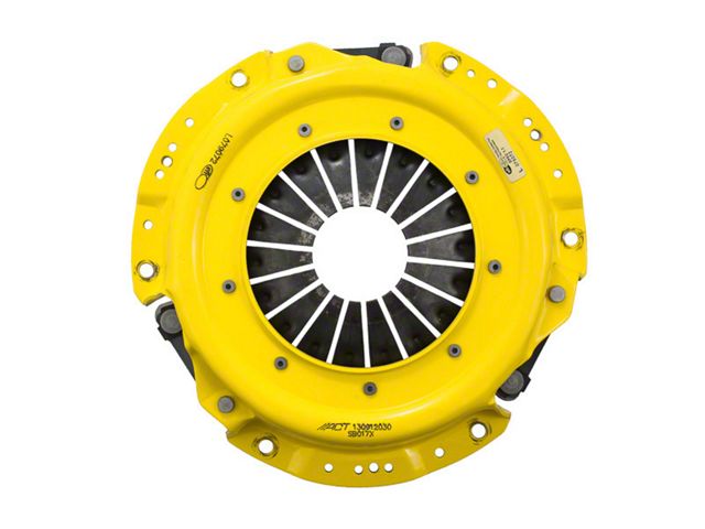 SB017X is an ACT Xtreme pressure plate that uses exclusive diaphragm design to increase clamp load, reduce deflection and maximize clutch life. All diaphragms endure a four-stage, heat-treating process for unparalleled performance. ACT pressure plates have precision cover stampings to provide rigidity and consistency. ACT's Xtreme pressure plates increase clamp load by 50 to 120 percent. Xtreme pressure plates are recommended for use with a street or race disc.