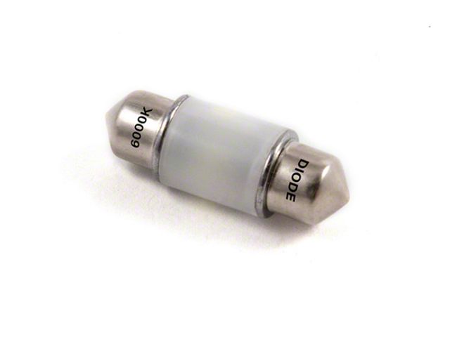 The 31mm HP6 LED bulb is a direct replacement for any 31mm-size bulb commonly found in door lights dome lights and trunk lights in many vehicles. Populated with eight high-power LEDs arranged in an omnidirectional pattern the HP6 upgrades the factory yellowish incandescent bulb to a more modern LED appearance while providing far more light output than the factory bulb. Thanks to the frosted cover the HP6 provides even light distribution and a clean factory-style appearance. With its durable metal terminals it will fit snugly in the socket and its light weight means it won't vibrate loose over time.
