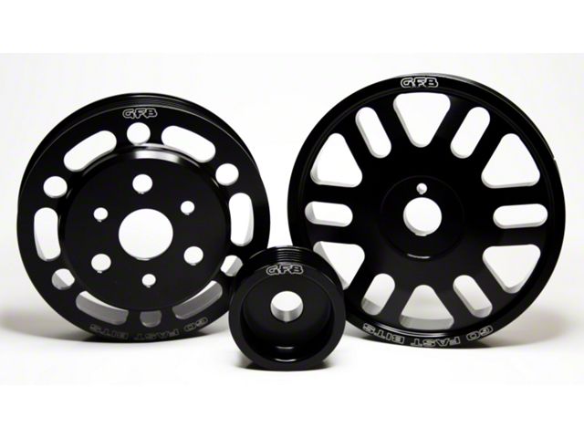 GO FASTER - ADD LIGHTNESS, GFB's Lightweight Pulley Kits offer sharper throttle response and faster acceleration by significantly reducing the rotating mass at the engine. Made from a single billet of 6061-T6 aluminium, then precision CNC machined to exacting tolerances, our pulley kits offer an exceptional bolt-on performance advantage without the need for supporting mods or tuning