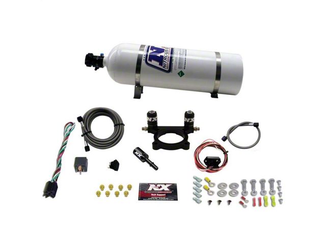 Nitrous Express has officially released a new nitrous system designed specifically for 2013 Scion FR-S And Subaru BRZ applications. The Nitrous Express FRS / BRZ Plate Systems feature Spraybarless technology for the ultimate in atomization and distribution. The billet plate bolts between the throttle body and intake making installation quick and easy. The solenoids are integrated into the plate for a super clean look. A direct-plug-in Fuel Line Adapter is provided to simplify installation (no need to cut your factory fuel lines). This system includes a TPS Wide Open Throttle Switch so the nitrous only activates at wide open throttle and automatically turns off when you decelerate. The system includes jetting for 35, 50, 75, and 100 horsepower. Systems include 15 foot stainless braided nitrous line, master arming switch, relay, relay harness and all necessary hardware to complete the installation. Includes a 15lb nitrous bottle with the billet aluminum Lightning 45 bottle valve and stainless bottle brackets.