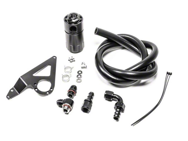 Single catch can kit for the 2022+ Subaru BRZ and Toyota GR86. Interfaces with the PCV valve line and installs the catch can in the RH corner of the engine bay. RH drive vehicle compatible.