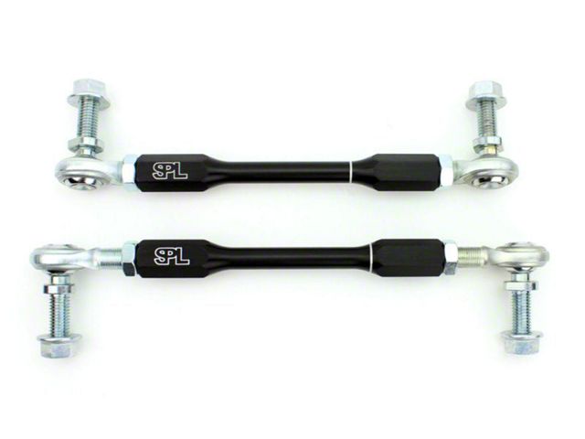 SPL Parts PRO Front Endlinks (FE) for the FRS/BRZ/08+WRX feature massive 2-piece Teflon lined FK 1/2" bearings to provide the highest load capacity for use with stiffer aftermarket sway bars. Custom heat treated Chromoly High Misalignment Studs connect to the sway bar and strut and offer extreme articulation capability (65deg) to prevent the endlink from binding when used with different adjustment holes on aftermarket sway bars. This version is recommended when using OEM Front Lower Control Arms and OEM front struts. Some aftermarket coilovers