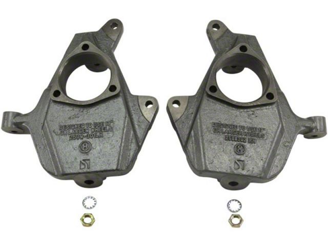 In 1983, Belltech developed one of the industry's first revolutionary products to help jump start the Sport Truck craze, the Drop Spindle. By relocating the spindle pin (Note: Application, while improving handling and retaining factory ride quality. Belltech spindles maintain critical suspension geometry and eliminate excessive ball joint, shock and tire wear common to other methods of lowering. Each spindle is crafted from powdercoated, CNC machined, high strength ductile iron castings providing the structural integrity to meet and exceed all factory specifications & requirements.