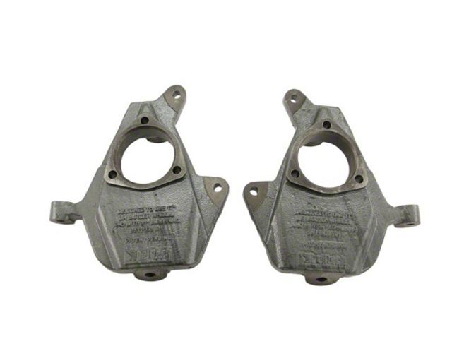In 1983, Belltech developed one of the industry's first revolutionary products to help jump start the Sport Truck craze, the Drop Spindle. By relocating the spindle pin (Note: Application, while improving handling and retaining factory ride quality. Belltech spindles maintain critical suspension geometry and eliminate excessive ball joint, shock and tire wear common to other methods of lowering. Each spindle is crafted from powdercoated, CNC machined, high strength ductile iron castings providing the structural integrity to meet and exceed all factory specifications & requirements.