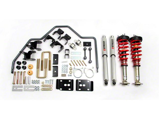 Combining our newly released height adjustable front coilovers with our time-tested lowering components equal the optimum in sporttruck handling all in one convenient package. Kits will contain (depending on Application), a combination of height adjustable coilovers, shock absorbers, sway bars and lowering components to give you a vast improvement over oem in overall performance and handling all while still retaining that comfortable ride quality.