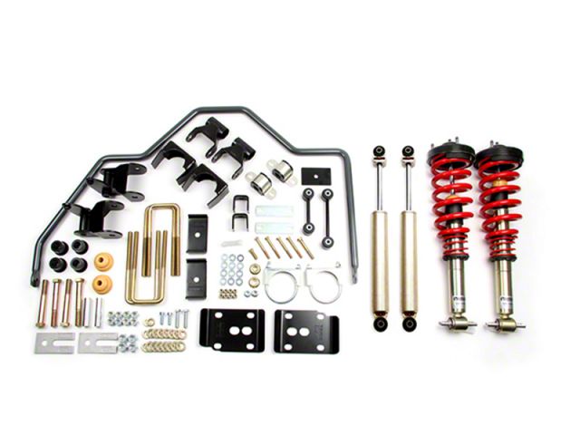 Combining our newly released independent damping adjustable front coilovers and supporting rear shocks with our time-tested lowering components equal the optimum in sporttruck handling all in one convenient package. Kits will contain (depending on Application), a combination of height adjustable coilovers, shock absorbers, sway bars and lowering components to give you a vast improvement over oem in overall performance and handling all while still retaining that comfortable ride quality.