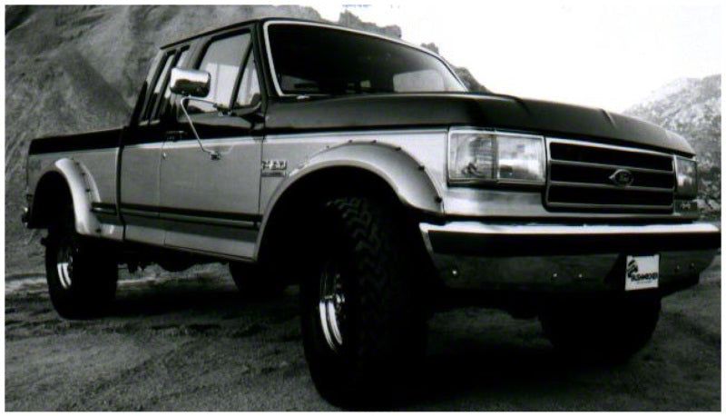 For extreme off-road use, there's nothing else like Bushwacker Cut-Out Fender Flares. Each set of Cut-Out Fender Flares is individually designed for your truck, to maximize off-road wheel travel and maintain adequate tire coverage. That custom approach means a smoother appearance, greater strength, and easier bolt-on installation with tough stainless steel hardware. Cut-Out Fender Flares are made from thick, warp-proof Dura-Flex 2000, our own proprietary material, engineered for added durability and flexibility in severe conditions. Its UV protection guards against chalking, while its pro-grade matte black finish looks great as-is, or custom painted to create your own personal look.