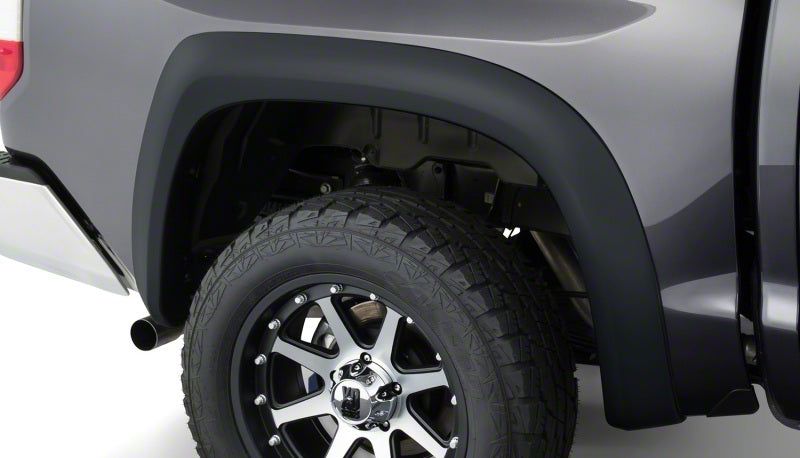 You've equipped your vehicle with oversize wheels and tires for serious off-road traction and clearance. Now you need extra tire coverage to protect your rig's body and maybe even comply with local laws. Bushwacker Extend-A-Fender Flares deliver premium-grade protection and style matched to oversized tires, yet as tough as they are, they go on easily with no drilling required. You can install them in minutes and enjoy them for years. Our exclusive Dura-Flex 2000 material is designed for added durability and flexibility with built-in UV protection. Your Extend-A-Fender Flares resist chalking, cracking, and warping, whether you leave them with their OEM-style matte black finish or paint them for a totally personalized look. Either way, your truck will look factory-equipped for your off-road tires. Extend-A-Fender Flares go on easy, perform tough, and look great.