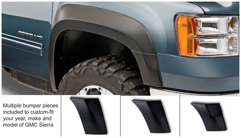 You've equipped your vehicle with oversize wheels and tires for serious off-road traction and clearance. Now you need extra tire coverage to protect your rig's body and maybe even comply with local laws. Bushwacker Extend-A-Fender Flares deliver premium-grade protection and style matched to oversized tires, yet as tough as they are, they go on easily with no drilling required. You can install them in minutes and enjoy them for years. Our exclusive Dura-Flex 2000 material is designed for added durability and flexibility with built-in UV protection. Your Extend-A-Fender Flares resist chalking, cracking, and warping, whether you leave them with their OEM-style matte black finish or paint them for a totally personalized look. Either way, your truck will look factory-equipped for your off-road tires. Extend-A-Fender Flares go on easy, perform tough, and look great.