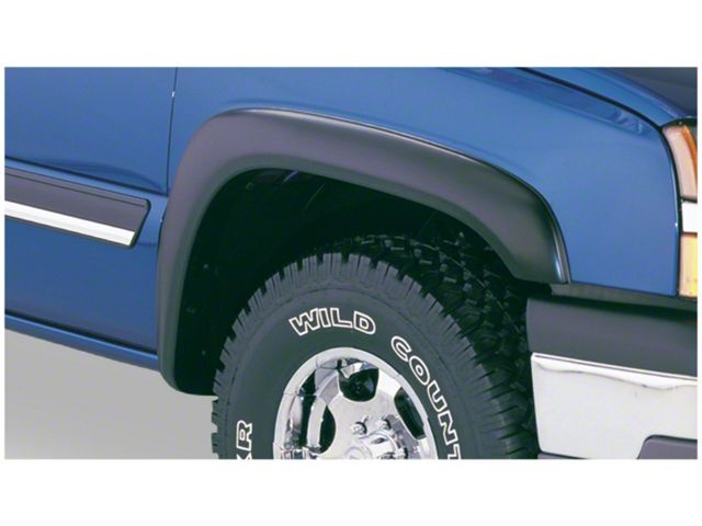 You've equipped your vehicle with oversize wheels and tires for serious off-road traction and clearance. Now you need extra tire coverage to protect your rig's body and maybe even comply with local laws. Bushwacker Extend-A-Fender Flares deliver premium-grade protection and style matched to oversized tires, yet as tough as they are, they go on easily with no drilling required. You can install them in minutes and enjoy them for years. Our exclusive Dura-Flex 2000 material is designed for added durability and flexibility with built-in UV protection. Your Extend-A-Fender Flares resist chalking, cracking, and warping, whether you leave them with their OEM-style matte black finish or paint them for a totally personalized look. Either way, your truck will look factory-equipped for your off-road tires. Extend-A-Fender Flares go on easy, perform tough, and look great.