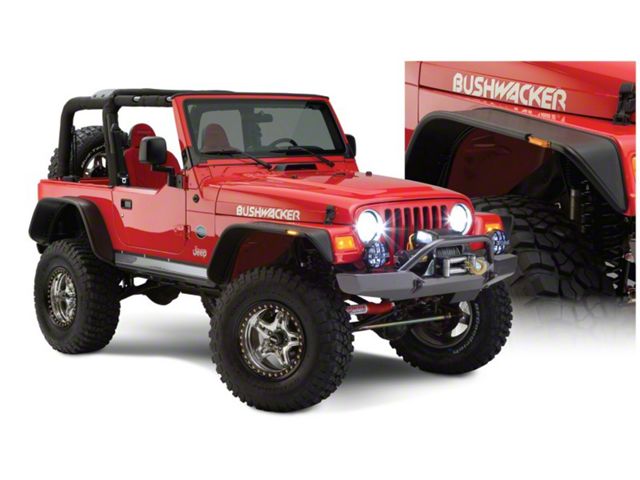 Be ready for anything: Equip your Jeep with Bushwacker Flat Style Fender Flares. They're the first and only flat style flares made to absorb impact using our proprietary Dura-Flex 2000 TPO the thickest, most flexible material available. Flat Style Fender Flares maximize your tire coverage and wheel articulation for intense off-road use. Yet they're carefully engineered to install with a minimum of extra tools and bodywork (see the installation guide for your specific vehicle for details). For example, our mounting brackets bolt straight onto your Jeep for added strength and simpler fitting. Our design integrates neatly with the factory rocker guards, and incorporates DOT-compliant LED side marker lights and fully molded wheel well protection. The flares are 100% UV protected, too, to stop chalking in its tracks. If you want the look and the real-world performance that best fits an American icon, nothing goes with your Jeep better than Bushwacker Flat Style Fender Flares.