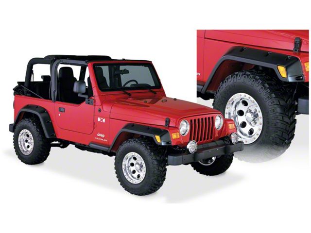 With their recessed stainless steel bolts and massive presence, Pocket Style Fender Flares are a Bushwacker original and an off-road icon. They give you the hard-core look of bolt-on flares, with no body-side sheet metal drilling required. Pocket Style Fender Flares are custom-designed for your vehicle to complement oversized tires and high-clearance lift kits. You can mount them right out of the box with their tough, OEM-style matte black finish they're UV protected so they won't chalk. You can also paint them to match or accent the body color for a factory-custom look. Pocket Style Fender Flares are made from our thick, warp-resistant Dura-Flex 2000 material and tailor-made for added durability and flexibility on the trail. When you need maximum tire coverage with minimum time and effort, it's in the pocket. Pocket Style Fender Flares from Bushwacker.