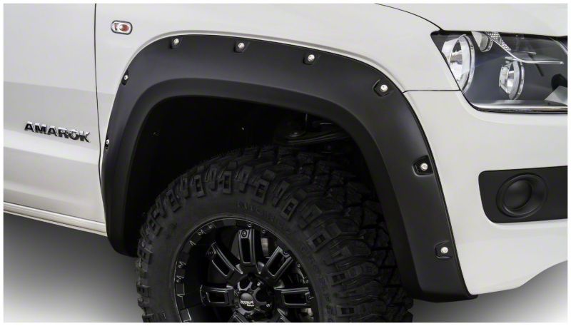 With their recessed stainless steel bolts and massive presence, Pocket Style Fender Flares are a Bushwacker original and an off-road icon. They give you the hard-core look of bolt-on flares, with no body-side sheet metal drilling required. Pocket Style Fender Flares are custom-designed for your vehicle to complement oversized tires and high-clearance lift kits. You can mount them right out of the box with their tough, OEM-style matte black finish they're UV protected so they won't chalk. You can also paint them to match or accent the body color for a factory-custom look. Pocket Style Fender Flares are made from our thick, warp-resistant Dura-Flex 2000 material and tailor-made for added durability and flexibility on the trail. When you need maximum tire coverage with minimum time and effort, it's in the pocket. Pocket Style Fender Flares from Bushwacker.