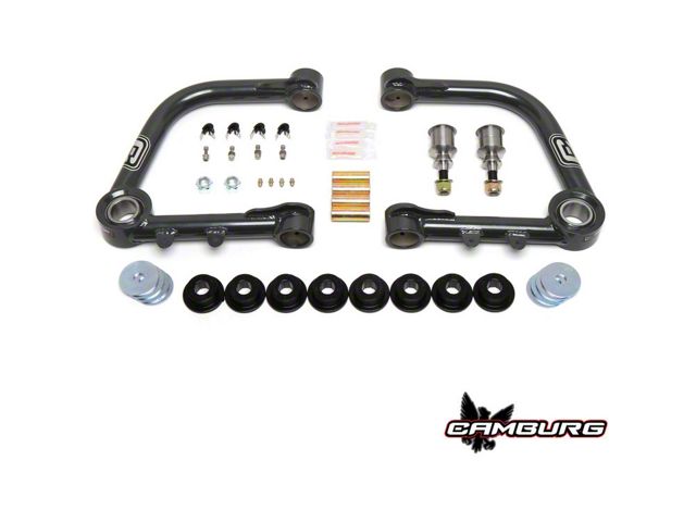 Our Camburg upper arms are designed to address the limitations of stock upper arms when lifting your truck. By replacing the stock ball-joint with a larger 1.50 uni-ball bearing, we improve wheel travel and durability under extreme conditions. We also adjust the camber curve and increase caster to correct geometry, resulting in improved driving characteristics and handling. Our arms are designed using CAD/CAM engineering software and manufactured in-house with precision. They feature thicker .156" wall round tubing, laser-cut and CNC-bent tubes, and MIG welding. The arms come with polyurethane frame pivot bushings with grease-able zerk fittings, FK 1.50" PTFE-lined uniballs, and steel gray powder-coating. All necessary hardware is included for installation. The arms are made in the USA and designed for 1-3" of lift, compatible with 2008-2022 Toyota Sequoias. Additionally, this suspension system is not compatible with 20" OEM wheels & tires and 18" OEM wheels with larger tires than stock.