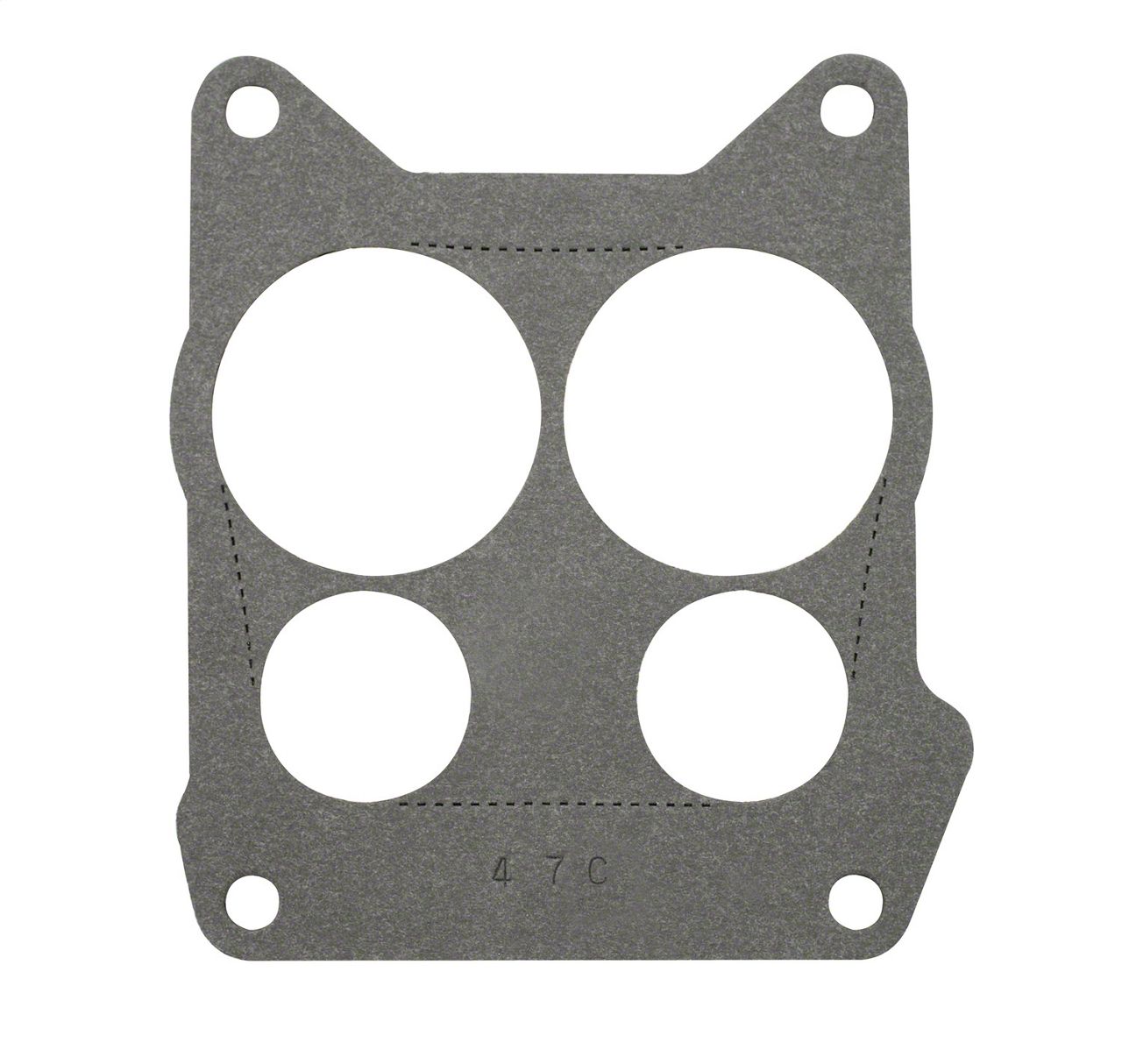 Throttle Bores. 4-hole gasket design. Gasket thickness .058in. Bulk packaged, can be purchased individually or master-pack of 10 pcs. Made from cellulose/nitrile composition gasket material. Provides excellent sealing and durability for all fuel (alcohol and gasoline) applications. Precision die-cut for excellent fit and seal. Seals using low flange pressure (clamp force), conforms to and seals any imperfections on sealing surfaces. Releases easily (no gasket scrapping required), will not stick to carburetor base or intake manifold mating surfaces.