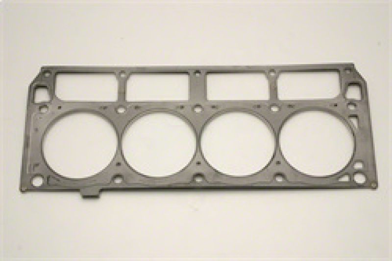 Comprised of multiple embossed layers of stainless steel with the outer layers utilizing a Viton rubber coating. Compressed operating thickness is 0.120". Cometic MLS (Multi-Layer Steel) Head Gaskets provide maximum sealing performance for todays high output engines and require no sealants. MLS gaskets are ideal for both aluminum heads to aluminum blocks and aluminum heads to cast iron blocks. They can withstand the shearing force created by the two materials. MLS gaskets have increased strength because they are comprised of multiple layers of stainless steel; which also creates the ability to rebound and resist corrosion. The outer layers are embossed and coated on both sides with Viton (a flour elastomer rubber based material that is heat resistant to 250 C/ 482 F). Viton is designed to meet the demands of a variety of harsh sealing environments, load conditions, and surface finishes. The center or shim layer is uncoated stainless steel, which can be varied to accommodate multiple thickness requirements.