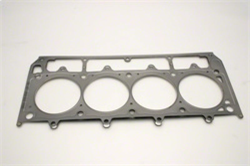 Comprised of multiple embossed layers of stainless steel with the outer layers utilizing a Viton rubber coating. Compressed operating thickness is 0.040". 18 Bolt Heads. Right Side. Cometic MLS (Multi-Layer Steel) Head Gaskets provide maximum sealing performance for todays high output engines and require no sealants. MLS gaskets are ideal for both aluminum heads to aluminum blocks and aluminum heads to cast iron blocks. They can withstand the shearing force created by the two materials. MLS gaskets have increased strength because they are comprised of multiple layers of stainless steel; which also creates the ability to rebound and resist corrosion. The outer layers are embossed and coated on both sides with Viton (a flour elastomer rubber based material that is heat resistant to 250 C/ 482 F). Viton is designed to meet the demands of a variety of harsh sealing environments, load conditions, and surface finishes. The center or shim layer is uncoated stainless steel, which can be varied to accommodate multiple thickness requirements.
