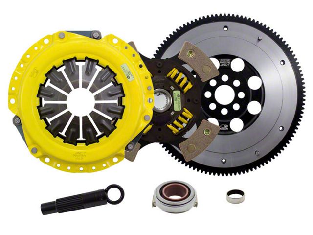 AR2-XTG4 kit features an Xtreme pressure plate for the most demanding driver. ACT Xtreme pressure plates use exclusive diaphragm design to increase clamp load, reduce deflection and maximize clutch life. All diaphragms endure a four-stage, heat-treating process for unparalleled performance. ACT pressure plates have precision cover stampings to provide rigidity and consistency. ACT's 4-pad spring-centered race disc features a spring-center construction to properly damp torsional vibrations for quieter operation and resist failure even under harsh conditions. ACT spring retainers utilize wraparound spring windows and thicker retainer stampings to provide spring support, reduce stress concentrations, and increase strength and reliability. With the 4-pad spring-centered race disc, engagement is harsher, but shifting is faster. ACT's 4-pad spring-centered race disc is well-suited for smaller disc sizes in smaller engines.