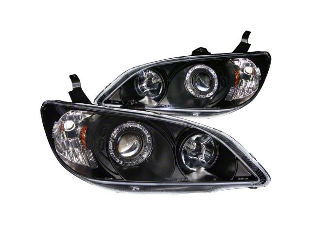 Projector Headlight Set, w/Halo, Clear Lens, Black Housing, Pair. Guaranteed To Improve Your Vehicles Appearance. Rigorously Tested For Fit And Function. Simple Plug And Play. No Modifications Required. Easy Installation Using Common Hand Tools. Uses Stock Mounting Locations And Hardware. D.O.T. Compliant To S.A.E. Standards. Sold As A Pair. Does Not Fit Hatchback Model.
