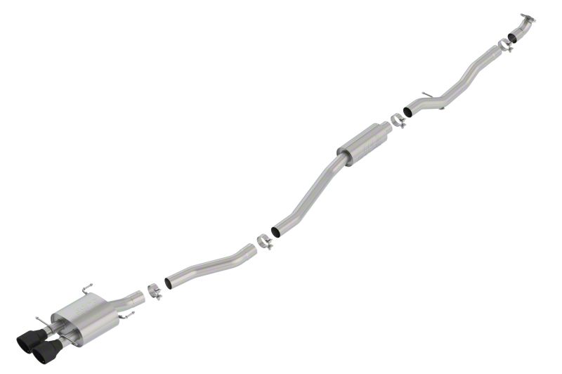 Features a durable high-temperature ceramic black finish on T-304 stainless steel tips. BORLA Cat-Back and Axle-Back exhaust systems feature patented straight-through and multi-core technology designed to unleash hidden horsepower. Increased exhaust velocity adds power, driving excitement, fuel economy, and the distinctive BORLA Sound of Power respected by motoring enthusiasts everywhere. Each system is built from premium T-304 austenitic stainless steel, superior to T-400 series knockoffs (such as 409), to give you the absolute best in performance and durability. Ultra-smooth mandrel bends ensure maximum flow and power, and precision computer numerical control (CNC) manufacturing ensures an accurate fit. Best of all, BORLA stands behind every system with a Million-Mile Warranty. Just what you'd expect from the world's most experienced (and most winning) exhaust brand.