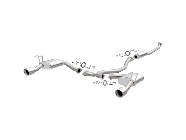 The MagnaFlow 2016-2021 Honda Civic Street Series Cat-Back Performance Exhaust System brings out the personality of your 1.5L 2016-2021 Honda Civic with our signature resonant, powerful engine tone and dyno-proven performance. Thanks to its fast-flowing, mandrel bent 2.25in. main piping and 3 Straight-Through mufflers ending in a Dual Split Rear exit with 4in. Polished Welded-On Double Wall Angle Cut Rolled Edge tips, this Honda Civic exhaust kit has the performance chops to match its sporty sound and appearance. Upgrade your ride to the next level with an exhaust that has the pipes to put other Honda Civic's to shame. With this system your vehicle will be producing Moderate exterior and Mild interior sound levels while leaving other cars and trucks feeling envious at every stoplight. Exhaust kit 19312 features a cat-back layout that replaces your ride's stock exhaust components from near the catalytic converter on back. Extensive 3D scanning during development has resulted in a direct-fit design that you can easily install yourself. 19312 is produced using CNC precision robotic manufacturing techniques and is backed by MagnaFlow's 1-year limited finish warranty and limited lifetime construction warranty.