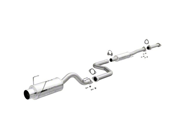 The MagnaFlow 1992-2000 Honda Civic Street Series Cat-Back Performance Exhaust System brings out the personality of your 1.5L, 1.6L 1992-2000 Honda Civic with our signature resonant, powerful engine tone and dyno-proven performance. Thanks to its fast-flowing, mandrel bent 2.25in. main piping and 2 Straight-Through mufflers ending in a Single Straight Passenger Side Rear exit with 4in. Polished Welded-On Single Wall Straight Cut Cut Edge tips, this Honda Civic exhaust kit has the performance chops to match its sporty sound and appearance. Upgrade your ride to the next level with an exhaust that has the pipes to put other Honda Civic's to shame. With this system your vehicle will be producing Moderate exterior and Mild interior sound levels while leaving other cars and trucks feeling envious at every stoplight. Exhaust kit 15643 features a cat-back layout that replaces your ride's stock exhaust components from near the catalytic converter on back. Extensive 3D scanning during development has resulted in a direct-fit design that you can easily install yourself. 15643 is produced using CNC precision robotic manufacturing techniques and is backed by MagnaFlow's 1-year limited finish warranty and limited lifetime construction warranty.