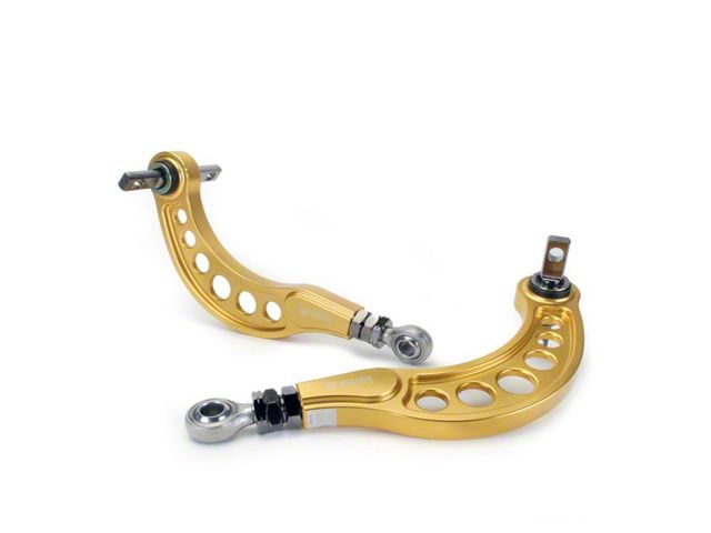 Skunk2's completely redesigned, Gold Anodized Rear Camber Kit for the 06-11 Civic is here. Thanks to Skunk2's new and unique telescoping, opposing-thread design, camber adjustments can now be made without having to disconnect the arm from the chassis. Simply loosen the jam nuts and twist for easy and fast positive or negative camber adjustments. Skunk2's completely redesigned Rear Camber Kit for Honda's '06-'11 Civic is based off of the same adjustable camber kit technology the company's been using on its own race cars for more than a decade. Skunk2's '06-'11 Civic Rear Camber Kit is a must-have for Civic owners looking to fine-tune their suspension or correct negative camber introduced from lowered ride heights. With the ability to adjust both positive and negative camber, Civic owners can reduce abnormal tire wear and significantly improve handling and overall stability. Each Skunk2 '06-'11 Civic Rear Camber Kit is constructed of forged alloy steel and aircraft quality, 7075 aluminum. Each kit includes Skunk2's industry-leading, low-deflection polyurethane bushings that act as bearings to allow for smooth pivoting. Skunk2's Camber Kits are the number one choice of many professional race teams, including Honda's own factory road race cars, since 1997. And since 1995, Skunk2 Racing has been leading the industry with its fully adjustable Camber Kits. To accommodate enthusiasts' needs, Skunk2 made a significant change in 1998 by adding an oversized, rectangular-shaped top mount to its Front Camber Kits for increased positive adjustment. In 2000, Skunk2 pioneered the use of one-piece forged ball joints. And in 2004, Skunk2 introduced its patent-pending Pro Series Ball Joints—a design that, today, sets the standard for all other camber kits.