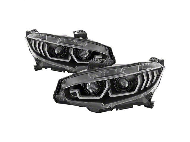 Spyder 16-18 Honda Civic 4Dr w/LED Seq Turn Sig Lights Proj Headlight - Black