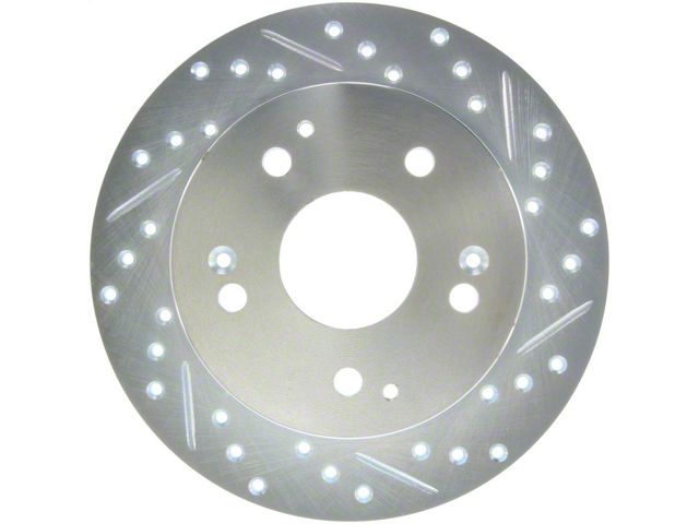 StopTech Drilled and Slotted Sport Rotors are 1-piece direct replacement brake discs for factory brake systems and stock calipers that look great behind your wheels and offer significantly improved braking performance. The unique cross-drilling and slotting aids with heat and brake dust dispersal; prevents glazing of the pads; adds bite and improves wet and dry braking performance. Built to last; the black e-coating provides protection from corrosion and the high carbon metallurgy (in most applications) offers quieter operation; better crack resistance and increased performance.