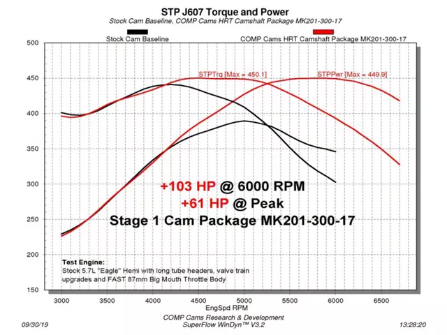 The Gen III Hemi market is rapidly expanding, and the HRT Camshaft Series uses the newest and most advanced lobe designs from COMP Cams in order to produce some of the highest average power and torque camshafts available for these engines. The "Low Shock Technology" features lobe profiles designed to maximize horsepower while improving stability at higher RPM. These profiles are also easier on the valve springs, enhancing durability and reducing load loss. The new HRT Camshafts receive the Micro Surface Enhancement (MSE) finishing process as a standard feature, which increases strength and performance by reducing surface peak roughness and provides a 250% improvement in the effective load bearing area, allowing for much higher loads. Organized into stages, these new options range from mild to wild! All HRT Stage 1 Camshafts are No Springs Required, which keeps cost down while still providing awesome horsepower increases over stock. Stages 2 and 3 applications work with COMP Cams Beehive and Conical Valve Springs, but COMP Cams is also introducing new HEMI Valve Spring Kits, engineered to produce the most power and RPM of any current options.