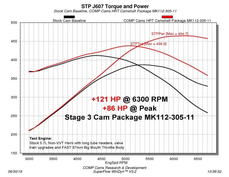 The Gen III Hemi market is rapidly expanding, and the HRT Camshaft Series uses the newest and most advanced lobe designs from COMP Cams in order to produce some of the highest average power and torque camshafts available for these engines. The "Low Shock Technology" features lobe profiles designed to maximize horsepower while improving stability at higher RPM. These profiles are also easier on the valve springs, enhancing durability and reducing load loss. The new HRT Camshafts receive the Micro Surface Enhancement (MSE) finishing process as a standard feature, which increases strength and performance by reducing surface peak roughness and provides a 250% improvement in the effective load bearing area, allowing for much higher loads. Organized into stages, these new options range from mild to wild! All HRT Stage 1 Camshafts are No Springs Required, which keeps cost down while still providing awesome horsepower increases over stock. Stages 2 and 3 applications work with COMP Cams Beehive and Conical Valve Springs, but COMP Cams is also introducing new HEMI Valve Spring Kits, engineered to produce the most power and RPM of any current options.