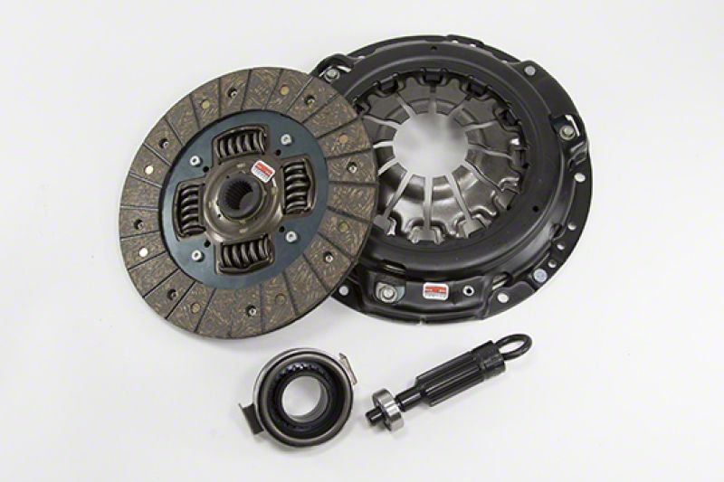 The Competition Clutch Stage 2 - Street Series 2100 Clutch Kits provide up to 80% increase in torque capacity and is properly suited for aggressive street use and moderate track use. The Brass Plus material with its alloy backing matched to a performance pressure plate will provide smooth engagement and extended life. The 2100 Series kits include a Competition Clutch performance pressure plate, a high torque sprung disc with anti-burst steel backed Brass Plus facings, throw out bearing (where applicable), pilot bearing/bushing (where applicable), and alignment tool.